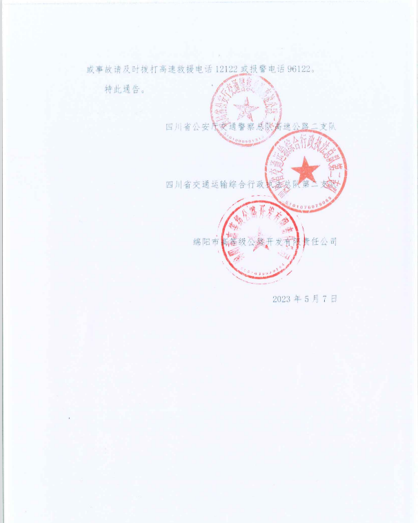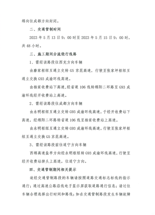 關(guān)于S1成萬高速公路楊家至永明段實(shí)行交通管制的通告